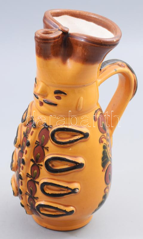 Hódmezővásárhelyi miskakancsó, jelzett, kis kopással, m: 14 cm https://www.darabanth.com/hu/491-Gyorsarveres/491.0/Porcelan-keramia-uveg/Keramiak~500005/Hodmezovasarhelyi-miskakancso-jelzett-kis-kopassal-m-14-cm~II3336451