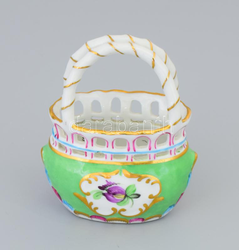 Leírás: Herendi óherendi kis kosár asztaldísz, jelzett, hibátlan, m: 8,5 cm