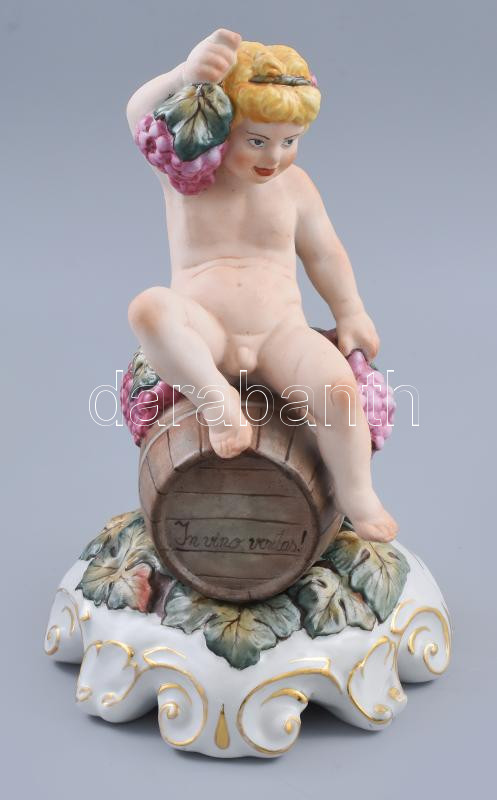 Leírás: Sumi Cluj porcelán Bacchus festett. részben biszkvit porcelán figura. Kézzel festett, jelzett, hibátlan 22 cm