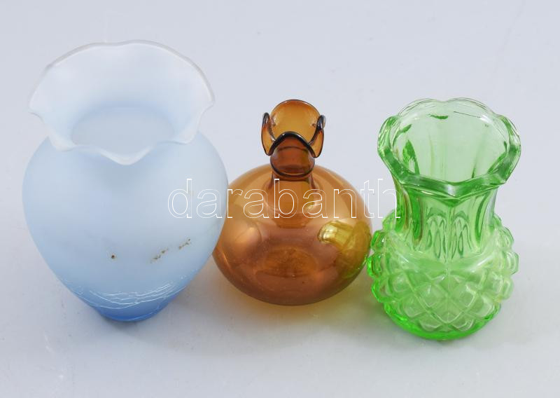 Leírás: 3 darab színes váza, m: 9,5 cm alatt