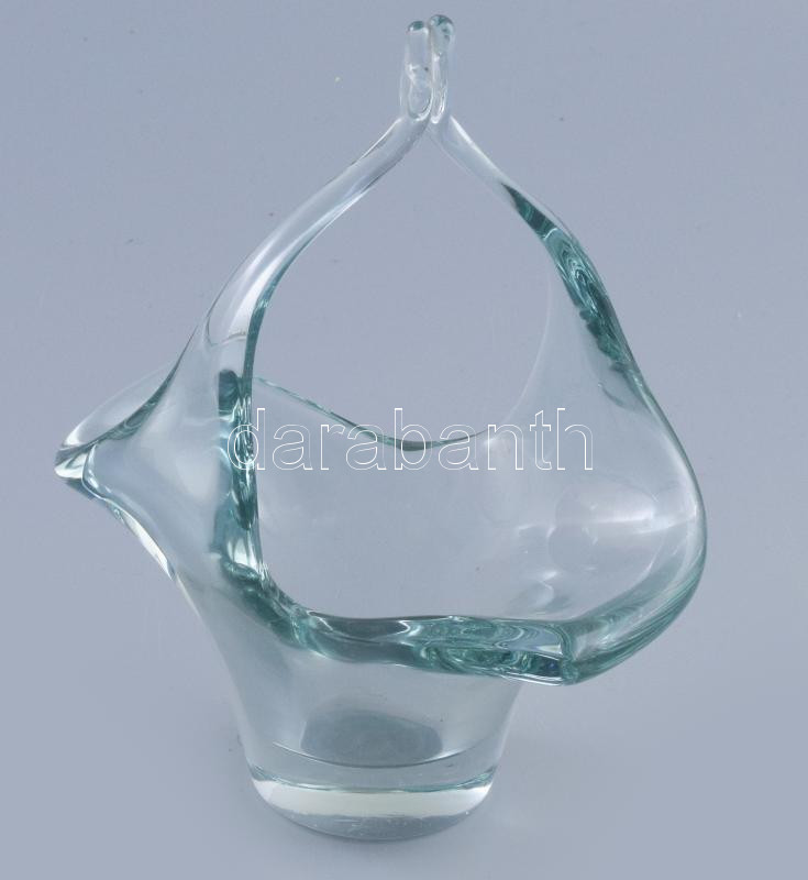 Leírás: Frantisek Zemek cseh üveg kosár. Formába öntött, hibátlan, m: 18 cm