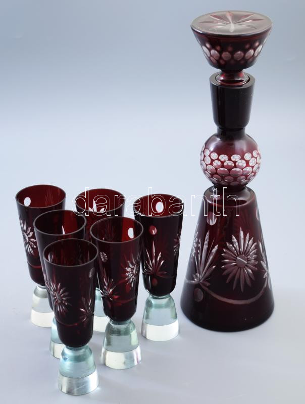 Kristály likőrös készlet. Palack. 46 cm, + 6 db pohár. https://www.darabanth.com/hu/491-Gyorsarveres/491.0/Porcelan-keramia-uveg/Uvegtargyak~500007/Kristaly-likoros-keszlet-Palack-46-cm-plus-6-db-pohar~II3272548