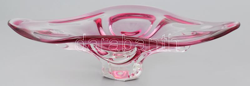 Leírás: Pink színű cseh asztaldísz kínáló, jelzés nélkül, 37x26 cm