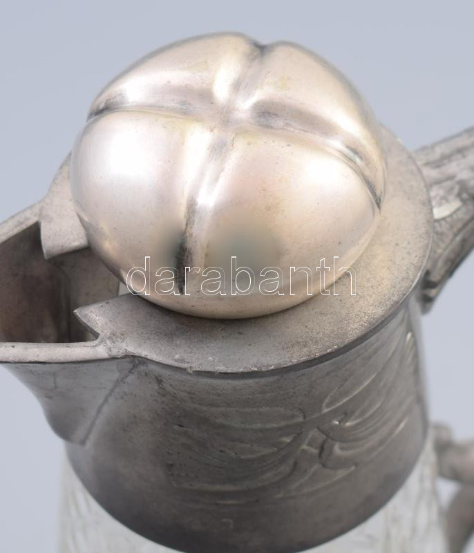 Szecessziós italkiöntő, fém szerelékkel, kopással, m: 26,5 cm https://www.darabanth.com/hu/491-Gyorsarveres/491.0/Porcelan-keramia-uveg/Uvegtargyak~500007/Szecesszios-italkionto-fem-szerelekkel-kopassal-m-26-5-cm~II3293025