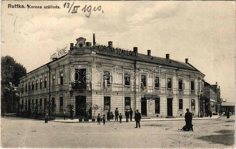 1910 Ruttka, Vrútky; Korona szálloda, Vasúti szálloda, Varjassy László... https://www.darabanth.com/hu/493-Gyorsarveres/493.0/Kepeslapok/Felvidek~2500010/1910-Ruttka-Vrutky-Korona-szalloda-Vasuti-szalloda-Varjassy-Laszlo-uzlete-Sochan-P-kiadasa-~II3384435