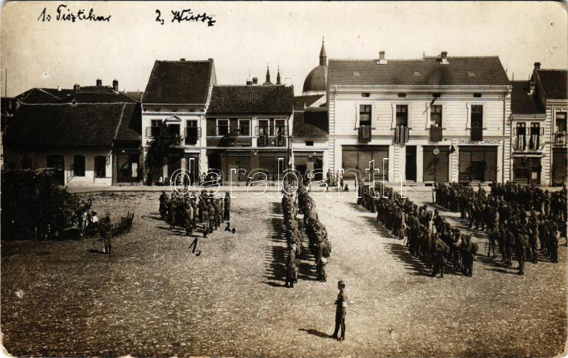 1916 Tábori mise Cacakon (Szerbia) 1916. augusztus 18-án. Felsorakozott katonák, tisztikar / WWI Austro-Hungarian K.u.K. military, field mass in Cacak (Serbia) with military officers. photo + "Zivilabteilung Gericht des k.u.k. Kreiskommandos Cacak" (kopott sarkak / worn corners)