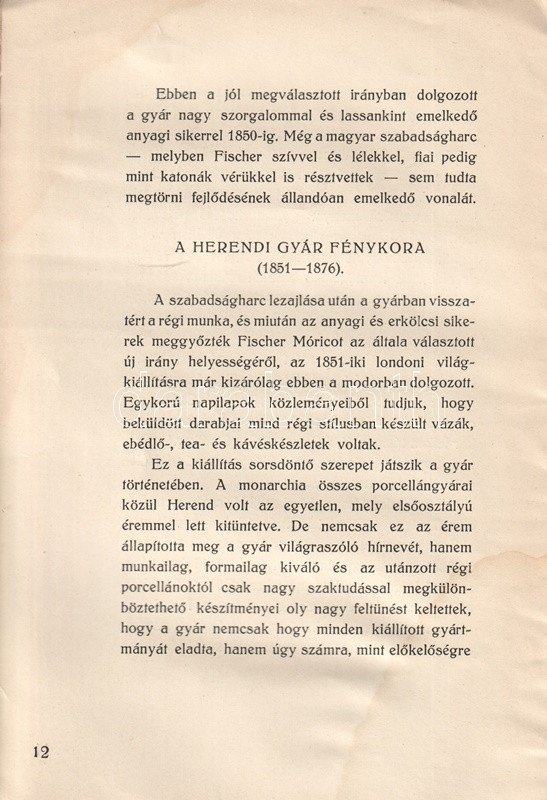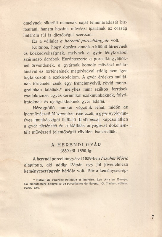 Layer Károly rövid ipartörténeti áttekintése a herendi porcelánokból rendezett tárlat alkalmából született. Példányunk fűzése meglazult, a fedőborítón régi tulajdonosi bejegyzés.