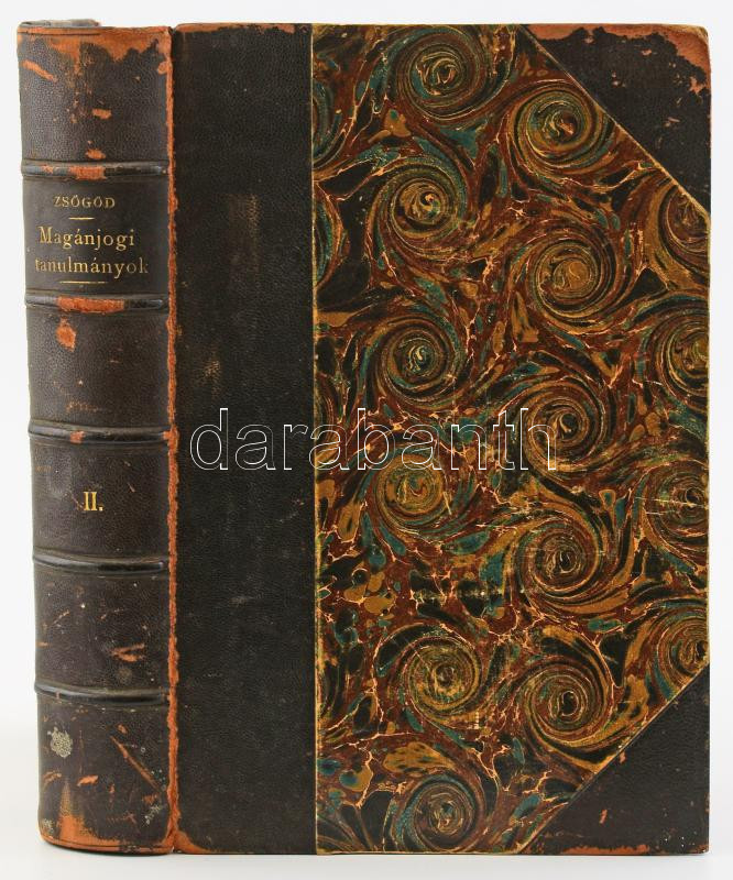 Zsögöd Benő: Magánjogi tanulmányok tervezetek és kisebb dolgozatok. Főként az öröklési, kereskedelmi és családi jog köréből. II. köt. Bp., 1901, Politzer Zsigmond, VII+1+915 p. Korabeli álbordás félbőr-kötés, márványozott lapélekkel, kopott borítóval, névbejegyzéssel