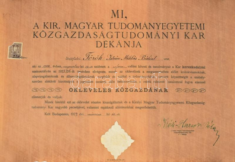 1927 közgazdász oklevél Dr. Erődi Harrach Tihamér dékán aláírásával https://www.darabanth.com/hu/493-Gyorsarveres/493.0/Kulfoldi-filatelia-es-postatortenet/Okmanyok~1000016/1927-kozgazdasz-oklevel-Dr-Erodi-Harrach-Tihamer-dekan-alairasaval~II3383543