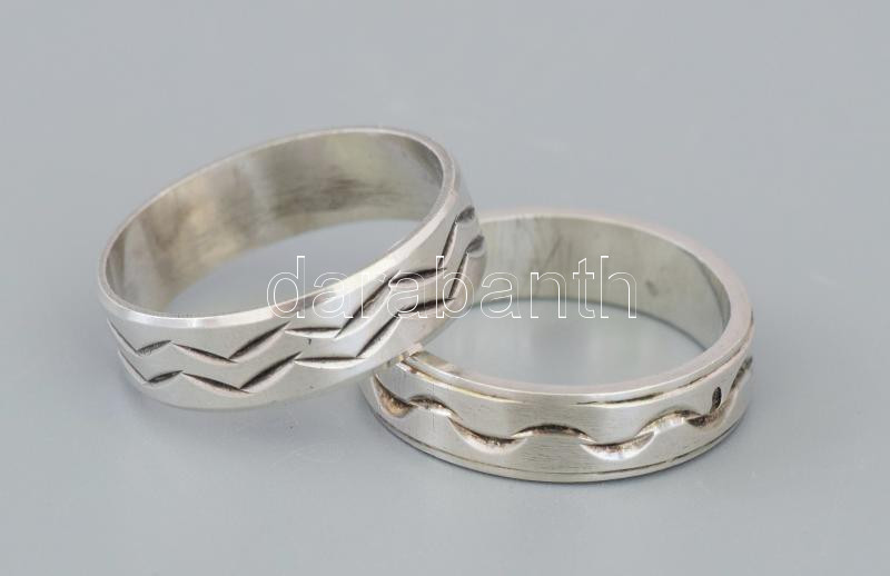 Leírás: Ezüst (Ag) 2 db hullámmintás karikagyűrű, jelzett, méret: 49, 50, nettó: 4,8 g