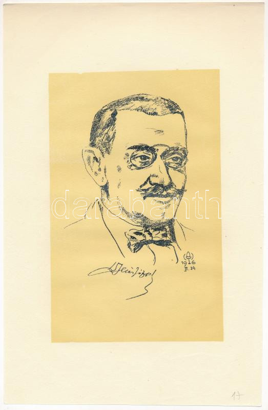 Leírás: Makoldy Sándor (1890-1957): Illés József portréja, 1926. Litográfia, papír, jelzett a metszeten. 19x12 cm