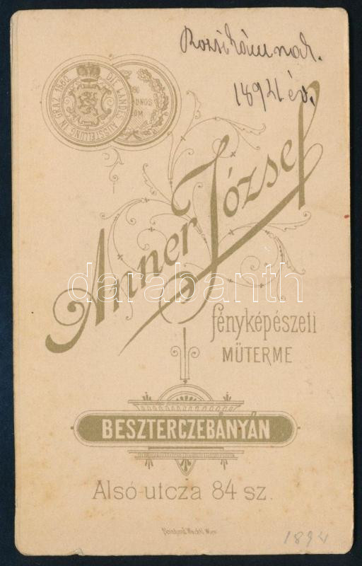 1894 Elegáns fiatal hölgy portréja, vizitkártya Anner József beszterce... https://www.darabanth.com/hu/496-Gyorsarveres/496.0/Fotomuveszet/Foto~500017/1894-Elegans-fiatal-holgy-portreja-vizitkartya-Anner-Jozsef-besztercebanyai-mutermebol-a-~II3389213