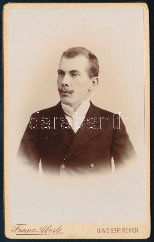 1902 Fehértemplom, férfiportré, keményhátú fotó Aberle Ferenc műterméb... https://www.darabanth.com/hu/496-Gyorsarveres/496.0/Fotomuveszet/Foto~500017/1902-Fehertemplom-ferfiportre-kemenyhatu-foto-Aberle-Ferenc-mutermebol-10-5C3976-5-cm~II3392599