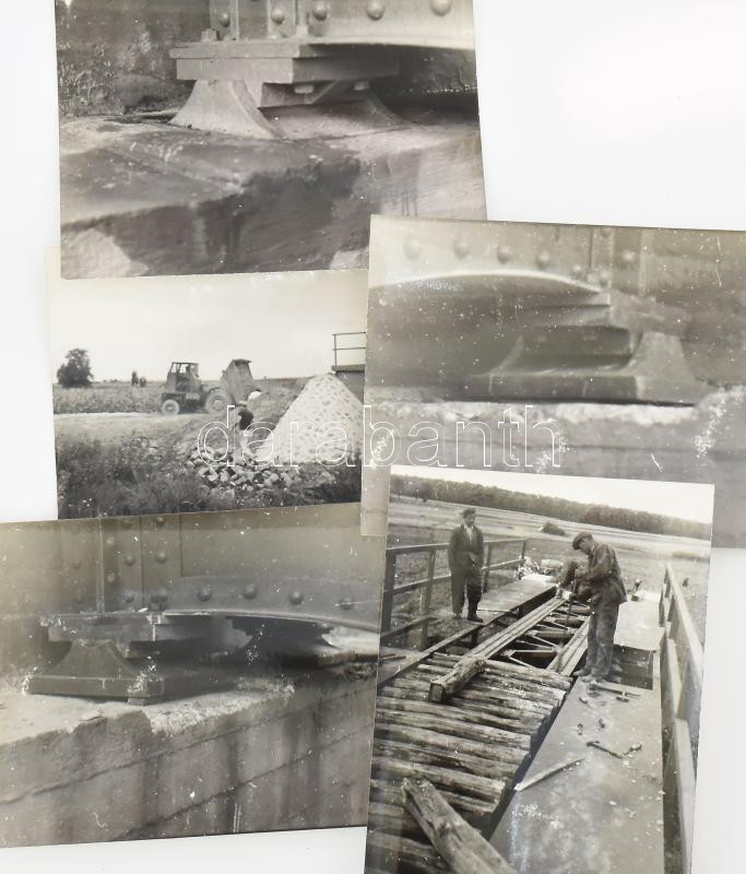Leírás: 1956 Petőháza, vasúti híd építési munkálatait ábrázoló fotók, össz. 8 db, a hátoldalon feliratozva, 12x9 cm