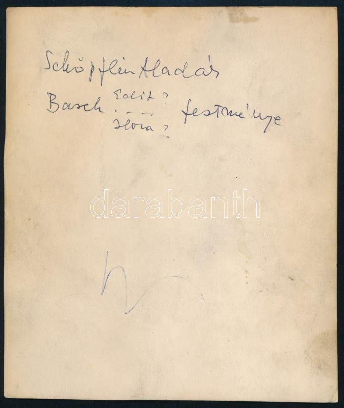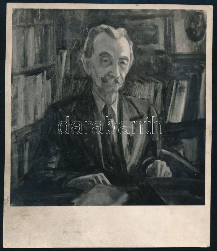Leírás: Schöpflin Aladár portréja, feltehetően Basch Edit festménye, jelzés nélküli fotó, hátoldalán feliratozott, 14,5x12,5 cm