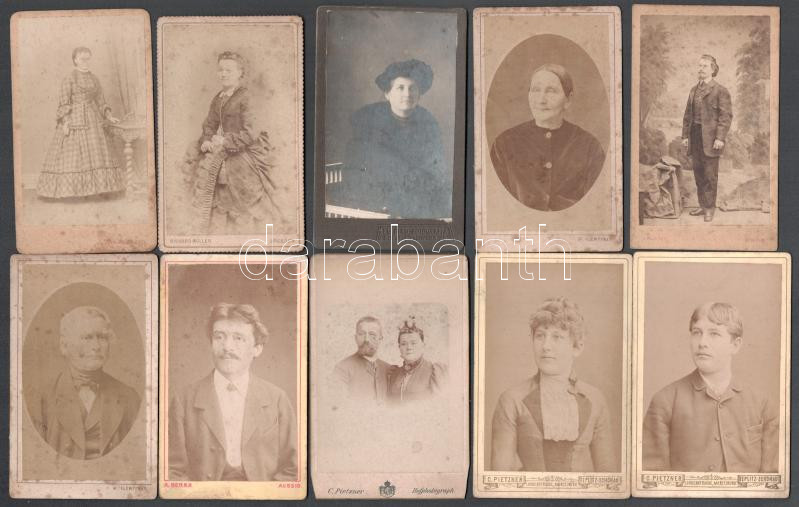 Leírás: cca 1865-1875 10 db keményhátú fotó cseh műtermekből, közte foltos, 10,5×6,5 cm