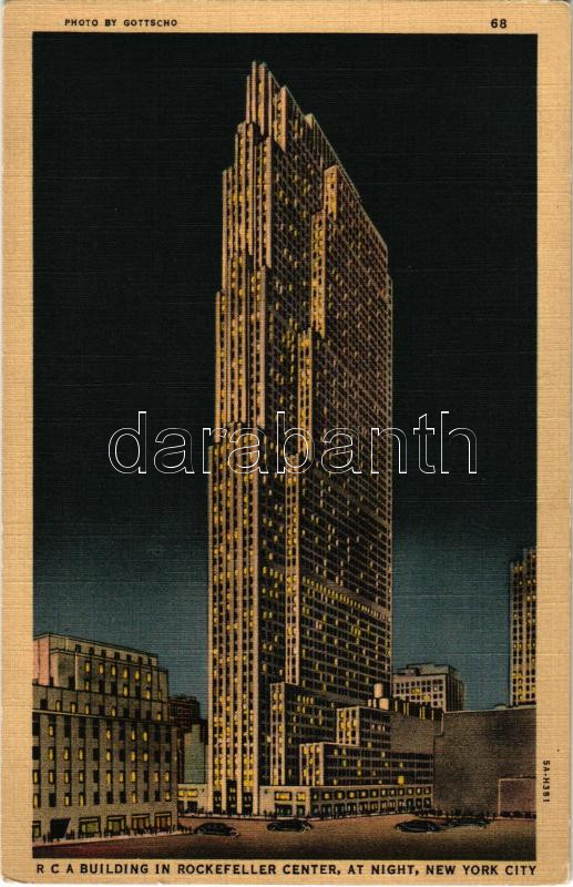 New York, RCA Building in Rockefeller Center at night https://www.darabanth.com/hu/496-Gyorsarveres/496.0/Kepeslapok/Amerikai-Egyesult-Allamok~2500019/New-York-RCA-Building-in-Rockefeller-Center-at-night~II3269181