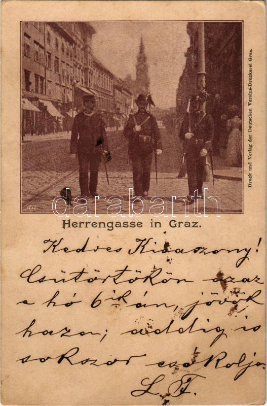 1899 (Vorläufer) Graz (Steiermark), Herrengasse / street, gendarmes (f... https://www.darabanth.com/hu/496-Gyorsarveres/496.0/Kepeslapok/Ausztria~2500021/1899-Vorlaufer-Graz-Steiermark-Herrengasse-street-gendarmes-fl~II3390490