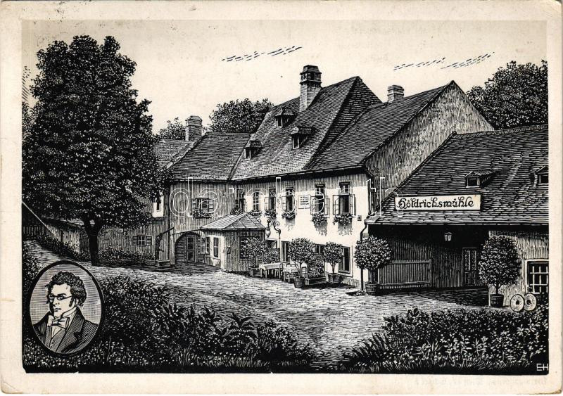 Leírás: 1939 Hinterbrühl, Gasthof "Höldrichsmüle" (Schubertstätte), Inh.: Julius Haberkorn / inn, Franz Schubert (EK)