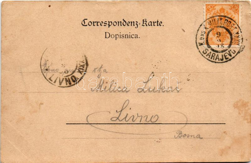 1898 (Vorläufer) Sarajevo, general view, mosque, Bosnian folklore. Ate... https://www.darabanth.com/hu/496-Gyorsarveres/496.0/Kepeslapok/Bosznia-Hercegovina~2500024/1898-Vorlaufer-Sarajevo-general-view-mosque-Bosnian-folklore-Atelier-Schadler-Art-Nouveau-f~II3356518