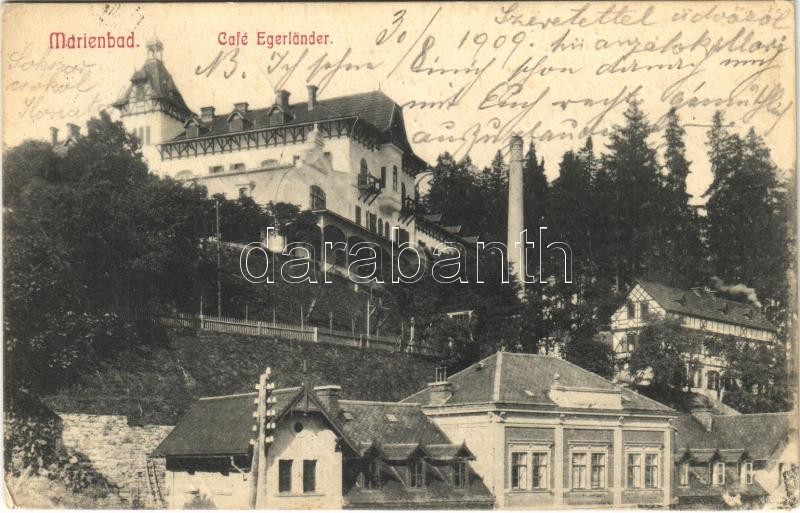 1909 Marianske Lazne, Marienbad; Café Egerländer (EK) https://www.darabanth.com/hu/496-Gyorsarveres/496.0/Kepeslapok/Cseh-Koztarsasag~2500026/1909-Marianske-Lazne-Marienbad-Cafe-Egerlander-EK~II2487094