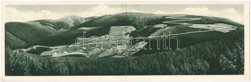 Leírás: 1936 Jilemnice, Panorama Mísecek s horskou silnicí presidenta T. G. Masaryka-Osvoboditele Jilmenice-Krkonos / mountain road, 2-tiled folding panoramacard