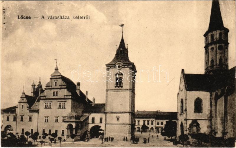 Lőcse, Levoca; A városháza keletről. Braun Fülöp kiadása / town hall https://www.darabanth.com/hu/496-Gyorsarveres/496.0/Kepeslapok/Felvidek~2500008/Locse-Levoca-A-varoshaza-keletrol-Braun-Fulop-kiadasa-town-hall~II2631671