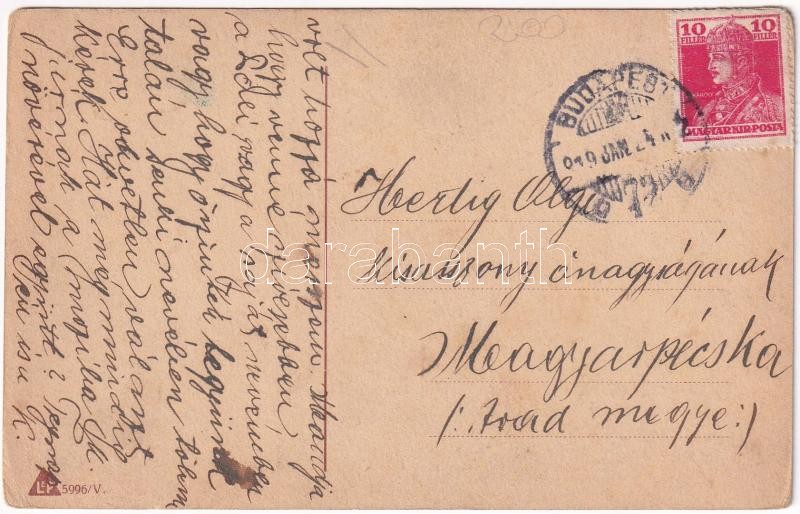 Leírás: 1919 Holnap eljövök... / Children art postcard, romantic couple, soldier boy. L&P 5996/V. (EK)
