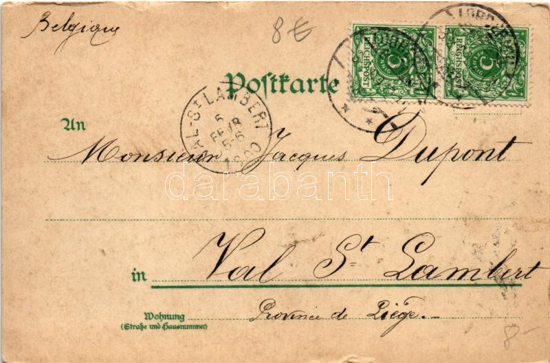 Leírás: 1900 S.M. Yacht "Hohenzollern" an der Regatta theilnehmend. Kunstanstalt J. Miesler 762. litho (tears)