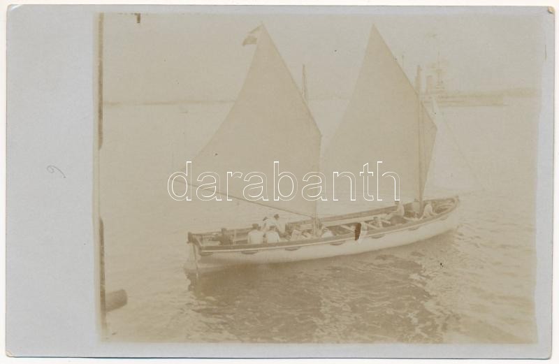 Leírás: 1914 SMS Zrínyi az Osztrák-Magyar Haditengerészet Radetzky-osztályú pre-dreadnought csatahajó matrózai vitorlás kiképzés közben / K.u.K. Kriegsmarinne, mariners of SMS Zrínyi during sailing training. photo