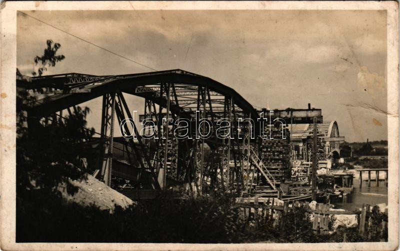 Gyékényes-Zákány. A robbantott Dráva híd helyreállítása. A III. hídmező emelése. 101. Vép. e. / WWII Hungarian military, bridge rebuilding (gyűrődés / crease)