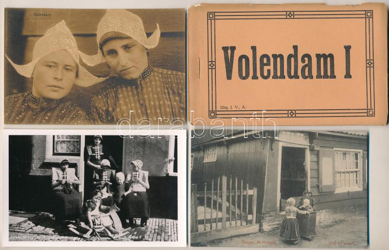 57 db főleg RÉGI használatlan motívum képeslap: holland népviseletek + 2 füzet és egy kis leporello / 57 pre-150 unused motive postcards: Dutch folklore from the Netherlands + 2 booklets and 1 small leporello