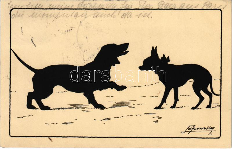 1913 Dogs. Silhouette art postcard. Meissner & Buch Künstler-Postk... https://www.darabanth.com/hu/496-Gyorsarveres/496.0/Kepeslapok/Kutya~2500085/1913-Dogs-Silhouette-art-postcard-Meissner-Buch-Kunstler-Postkarten-Serie-1915-Begegnung-EK~II2962028