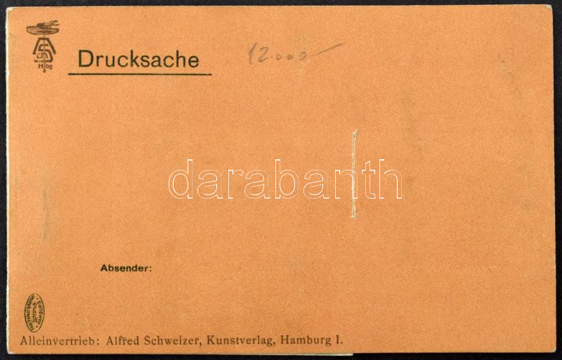 Dr. Ing. Graf Zeppelin. Nach der Katastrophe / Zeppelin léghajó a katasztrófa után. Kinyitható szecessziós litho mechanikus képeslap "felugró" térbeli hatással / Zeppelin airship after the catastrophe. Alleinvertrieb Alfred Schweizer Kunstverlag Art Nouveau folding mechanical litho postcard with pop-up effect