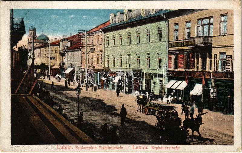 1916 Lublin, Krakowskie Przedmiescie / Krakauerstrasse / street, shops... https://www.darabanth.com/hu/496-Gyorsarveres/496.0/Kepeslapok/Lengyelorszag~2500038/1916-Lublin-Krakowskie-Przedmiescie-Krakauerstrasse-street-shops-plus-Kuk-Etappenpostamt-Lubl~II2993306