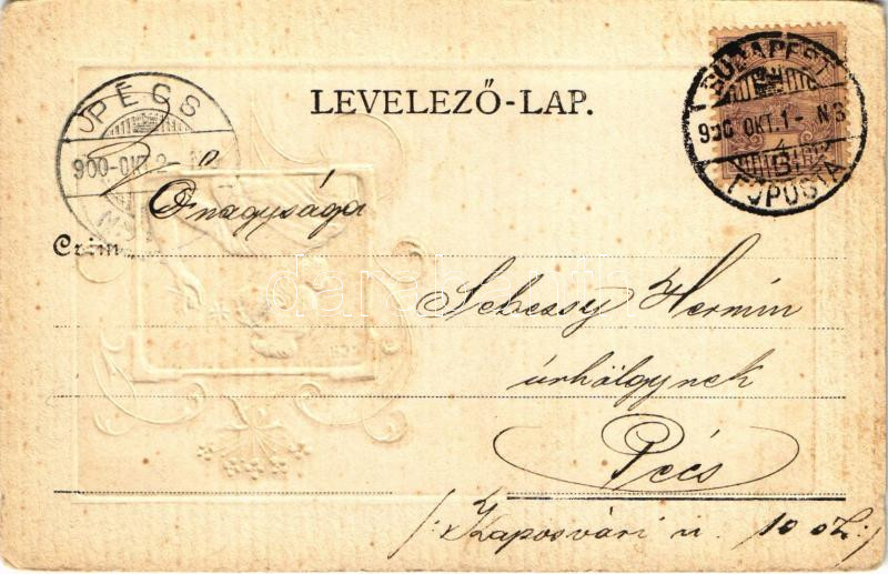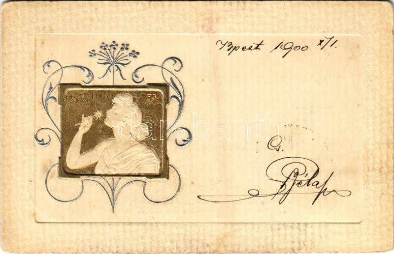 1900 Art Nouveau lady, Floral, Emb. litho (EK) https://www.darabanth.com/hu/496-Gyorsarveres/496.0/Kepeslapok/Muveszlapok~2500090/1900-Art-Nouveau-lady-Floral-Emb-litho-EK~II2962011