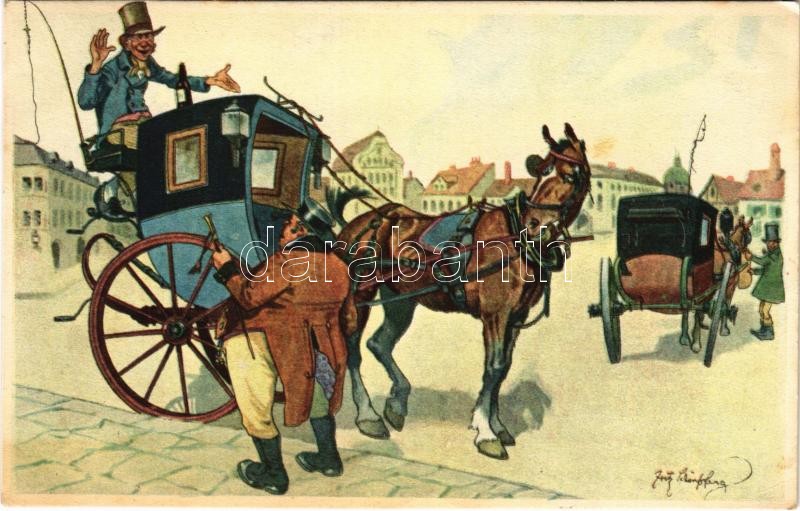 1925 Horse-drawn carriage, humour. B.K.W.I. 540-3. s: Schönpflug (EK) https://www.darabanth.com/hu/496-Gyorsarveres/496.0/Kepeslapok/Muveszlapok~2500090/1925-Horse-drawn-carriage-humour-BKWI-540-3-s-Schonpflug-EK~II2640190