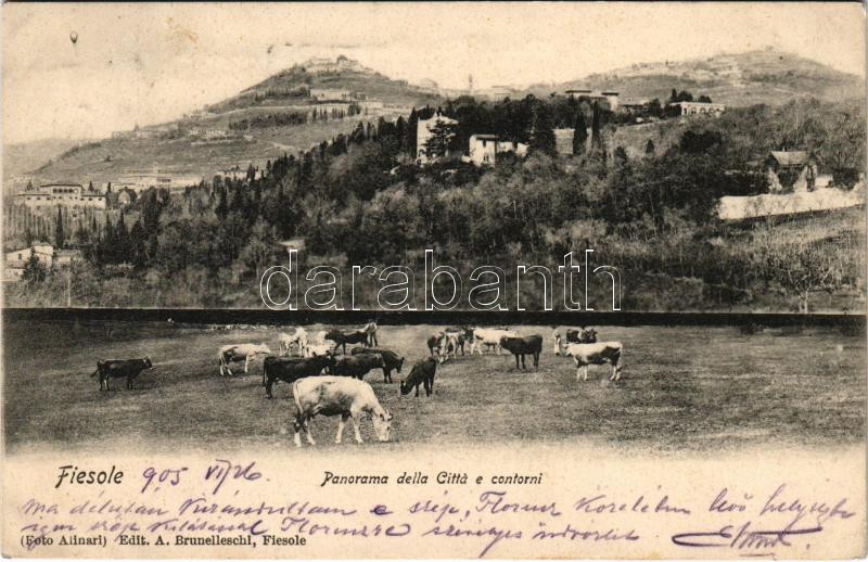 Leírás: 1905 Fiesole, Panorama della Cittá e contorni / general view, herd of cows (fl)