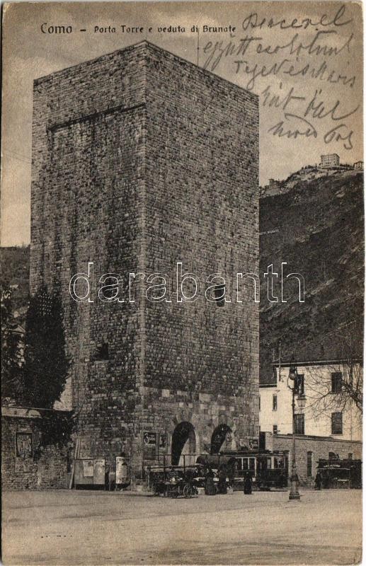 1910 Como, Porta Torre e veduta di Brunate / tower gate, tram (EK) https://www.darabanth.com/hu/496-Gyorsarveres/496.0/Kepeslapok/Olaszorszag~2500049/1910-Como-Porta-Torre-e-veduta-di-Brunate-tower-gate-tram-EK~II2635458
