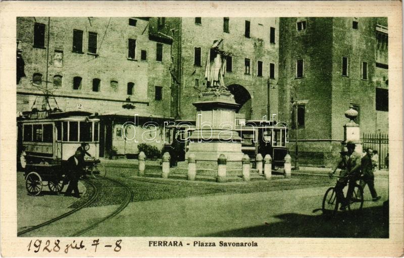 1928 Ferrara, Piazza Savonarola / square, tram, bicycle https://www.darabanth.com/hu/496-Gyorsarveres/496.0/Kepeslapok/Olaszorszag~2500049/1928-Ferrara-Piazza-Savonarola-square-tram-bicycle~II2633403