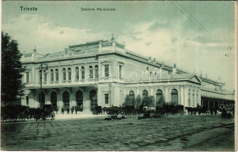 Trieste, Trieszt; Stazione Meridionale / railway station https://www.darabanth.com/hu/496-Gyorsarveres/496.0/Kepeslapok/Olaszorszag~2500049/Trieste-Trieszt-Stazione-Meridionale-railway-station~II2633956