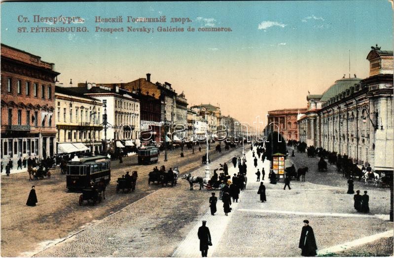 Leírás: Saint Petersburg, St. Petersbourg, Petrograd; Prospect Nevsky, Galeries de commerce / street view, tram