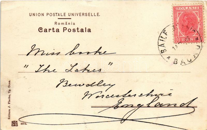 1906 Slanic-Moldova, Baile Slanic, Szlanikfürdő (Bacau); Parcu du Pavilionul de Musica, Vederea spre Muntele Dobru / park with music pavilion, general view. Edit. J. Flachs (EK)