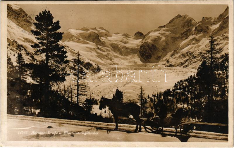 1926 Morteratschgletscher, Bernina Strasse u. / general view, horse sl... https://www.darabanth.com/hu/496-Gyorsarveres/496.0/Kepeslapok/Svajc~2500055/1926-Morteratschgletscher-Bernina-Strasse-u-general-view-horse-sled~II3246383