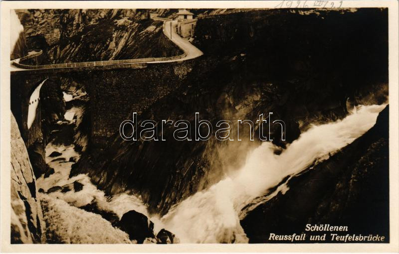Schöllenen, Reussfall und Teufelsbrücke / gorge, old bridge, waterfall https://www.darabanth.com/hu/496-Gyorsarveres/496.0/Kepeslapok/Svajc~2500055/Schollenen-Reussfall-und-Teufelsbrucke-gorge-old-bridge-waterfall~II3248286