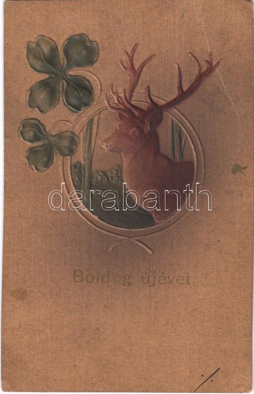 1910 Boldog Újévet! / New Year greeting art postcard with deer and clo... https://www.darabanth.com/hu/496-Gyorsarveres/496.0/Kepeslapok/Udvozlolapok-Unnepek~2500102/1910-Boldog-Ujevet-New-Year-greeting-art-postcard-with-deer-and-clovers-Emb-litho-EK~II2309641