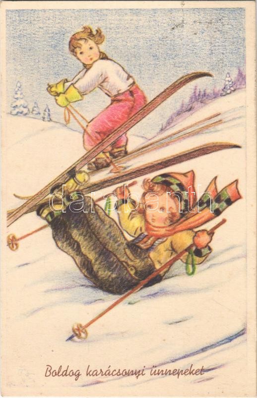 1940 Boldog karácsonyi ünnepeket! / Christmas greeting art postcard wi... https://www.darabanth.com/hu/496-Gyorsarveres/496.0/Kepeslapok/Udvozlolapok-Unnepek~2500102/1940-Boldog-karacsonyi-unnepeket-Christmas-greeting-art-postcard-with-skiers-winter-sport-Cec~II2487342