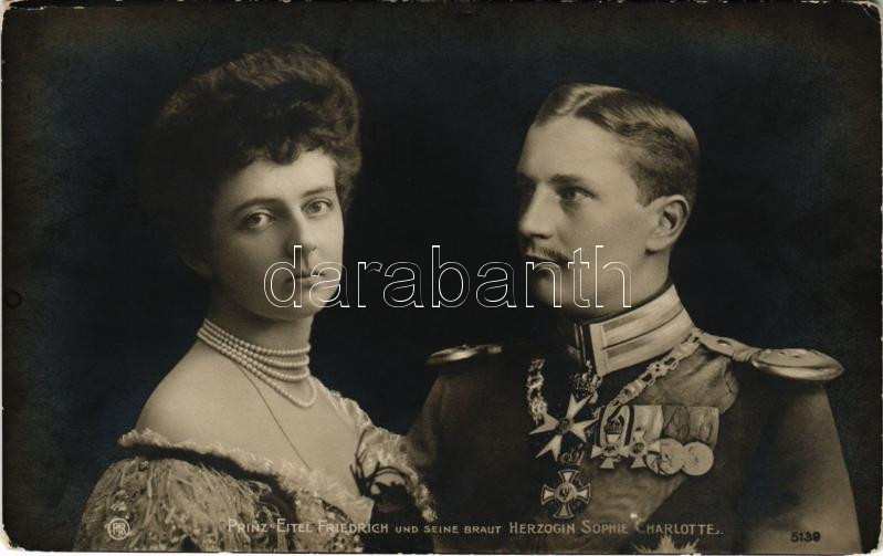 Prinz Eitel Friedrich und seine Braut Herzogin Sophie Charlotte / Prince Eitel Friedrich of Prussia (son of Wilhelm II) and his wife Duchess Sophia Charlotte of Oldenburg (EK)