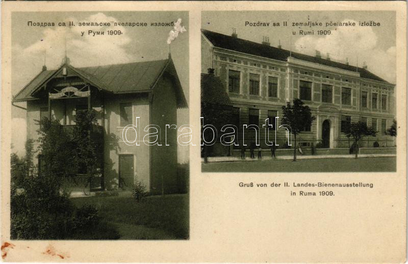 1914 Árpatarló, Ruma; Pozdrav sa II. zemaljske pcelarske izlozba u Rumi 1909 / Gruß von der II. Landes-Bienenausstellung in Ruma 1909 / Üdvözlet a II. Országos Méhészeti Kiállításról / Greetings from the 2nd National Beekeeping Exhibition (felületi sérülés / surface damage)