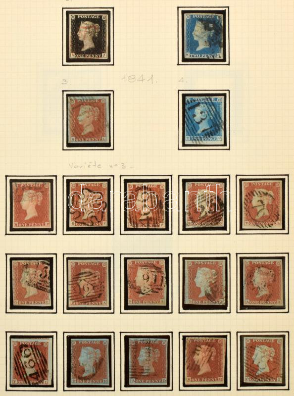 Anglia gyűjtemény régi albumban, benne 560 db bélyeg, 58 levél, 14 díjjegyes. Black Penny-vel kezdve, sok bélyeg 1856-1883 között. Magas katalógusérték!